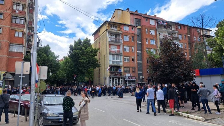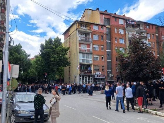 Qindra serbë mblidhen afër shkollës teknike në veri të Mitrovicës