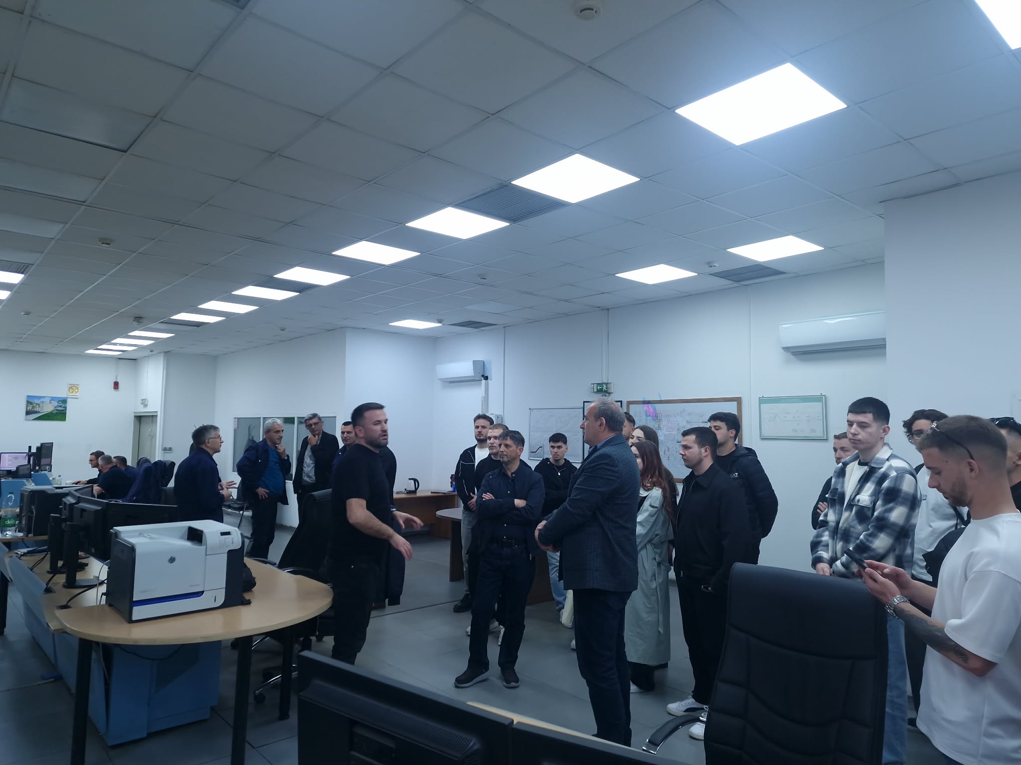 Një ndër pikat kyçe të vizitës ishte turi teknik i udhëhequr nga Inxhinieri Kryesor, Enver Shabani, përmes të cilit studentët patën mundësinë të shohin nga afër funksionimin e sistemeve të avancuara si SCADA, rrjeti i tensionit 6.3 kV, sistemet DC dhe mbrojtjet rele – elemente thelbësore për operimin e sigurt dhe efikas të impianteve energjetike moderne.