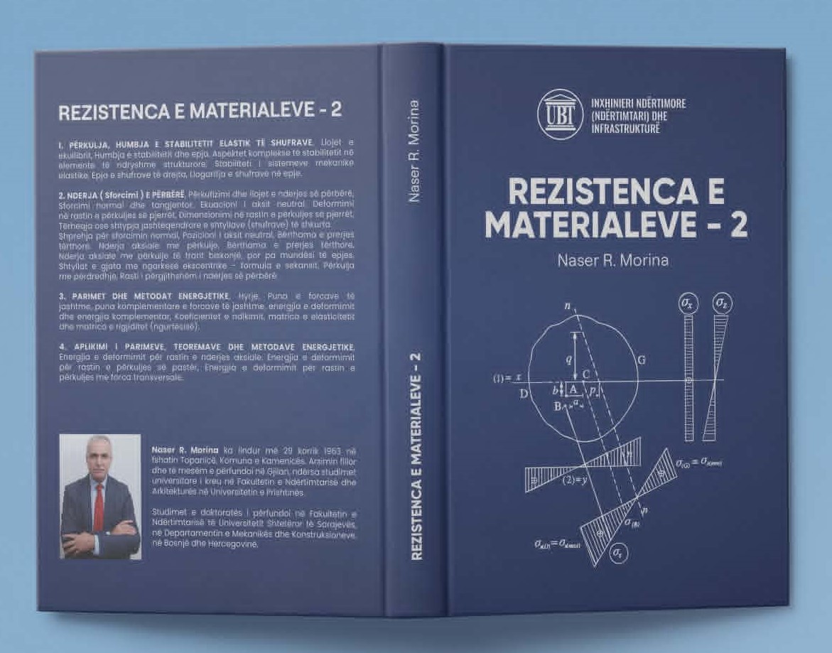 Profesori i Fakultetit të Inxhinierisë së Ndërtimit dhe Infrastrukturës në UBT, Naser Morina, ka botuar librin e ri “Rezistenca e Materialeve – 2”, i cili u dedikohet studentëve dhe profesionistëve të fushës së inxhinierisë së ndërtimit.