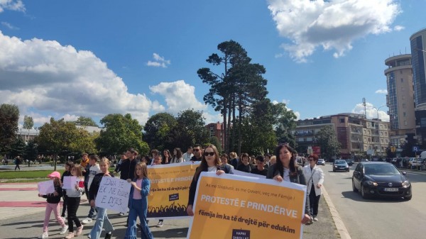Dhjetëra prindër, nxënës e përfaqësues nga shoqëria civile kanë protestuar sot në Gjakovë duke kërkuar që mësimi të fillojë.