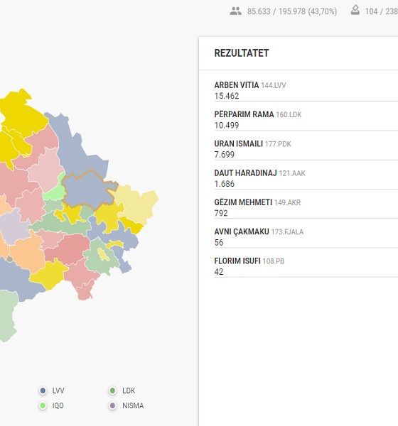 Numërohen 43.70% e votave në Prishtinë: Vitia 42.67%, Rama 28.97%, Ismaili 21.25%