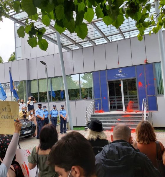 Protestuesit hedhin ngjyrë të kuqe në objektin e Qeverisë