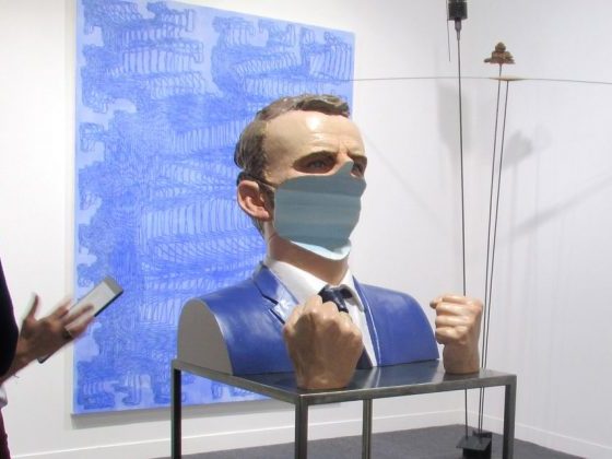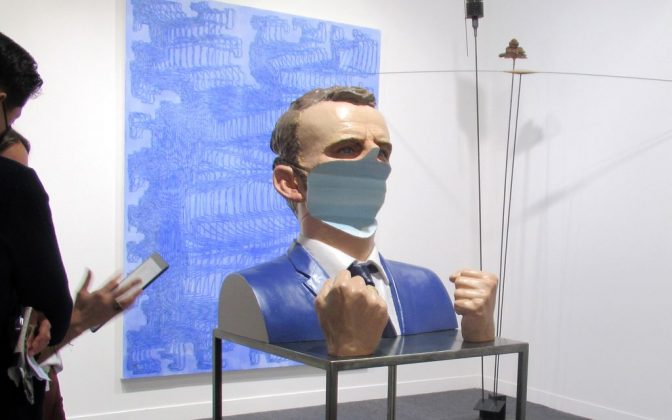 Në galerinë belge Baronian Xippas kishte veçanërisht grumbullime të shumta. Arsyeja: një bust i Emmanuel Macron, prej rrëshire, që paraqet kokën e presidentit francez me një copë të madhe të fytyrës së poshtme të hequr, duke e lënë atë pa hundë, gojë apo mjekër. Çmimi për bustin: 80 000 euro (93 125 dollarë).
