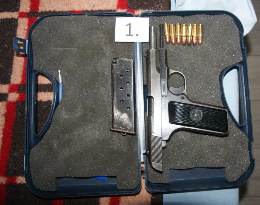 Para në vlerë 8700 Euro1 (një) Granatë dore1 (një) Revole TT me një karikator me shtatë fishek cal.7.62 mm145 (njëqindedyzetepesë) fishek cal.7.62 mm1 (një) karikator201 (dyqindenjë) fishek të cal.7.62×39 mm1 (një) sprej piper1 (një) gëzhoj 7.62×39 mm1 (një) cigare e mbushur me substancë të dyshuar Marihuanë me peshë 1.1 gr./D.B/EO