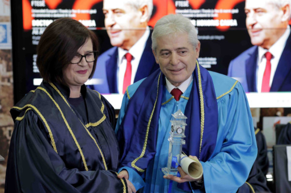 UBT NewsKryetari i BDI-së, Ali Ahmeti ka pranuar titullin “Doctor Honoris Causa” nga Universiteti Europian i Tiranës.