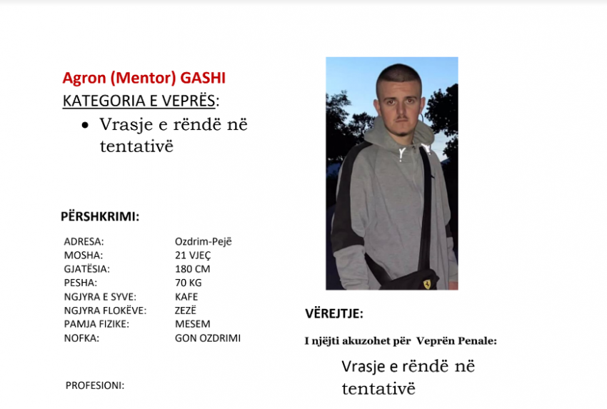 Arrestohet Agron Gashi, i dyshuari për plagosjen e trefishtë në Pejë