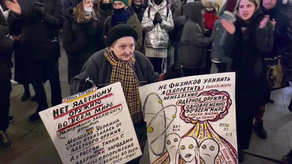 Në një apartment të vogël në Shën Petersburg, artistja 76-vjeçare Elena Osipova shfaqi pankartat e saj kundër pushtimit rus të Ukrainës. Në njërën nga to ajo shkroi: “Putini është luftë. Ne nuk mund të vdesim për Putinin”. Në një tjetër përshkruhet presidenti rus si djall, me brirët e Satanit.