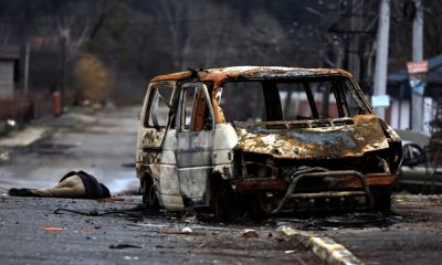 Trupat e të paktën 20 burrave civilë u gjetën të shpërndarë nëpër një rrugë në qytetin Bucha.