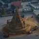 Kështjella është në formë piramide dhe rreth saj është bërë një strukturë prej druri në mënyrë që artisti të presë figurat e mahnitshme në rërë.