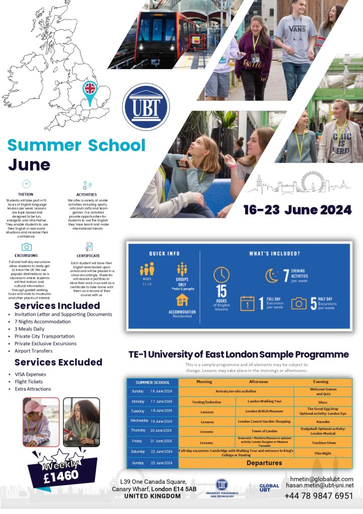 Bashkohuni për një javë të paharrueshme mësimi dhe argëtimi në UBT London Summer School 2024!