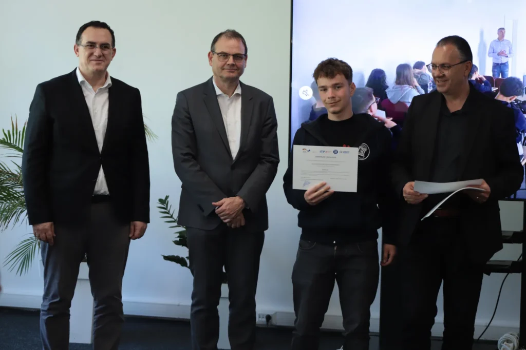 Përfaqësuesi i GIZ, z. Hans-Juergen Cassens, në fjalën e tij përgëzoi organizatorët për guximin për të eksperimentuar me një model të ri edukativ dhe shprehu mbështetjen e GIZ-it për projekte që ndikojnë drejtpërdrejt në zhvillimin ekonomik të vendit përmes fuqizimit të rinisë dhe nxitjes së inovacionit.