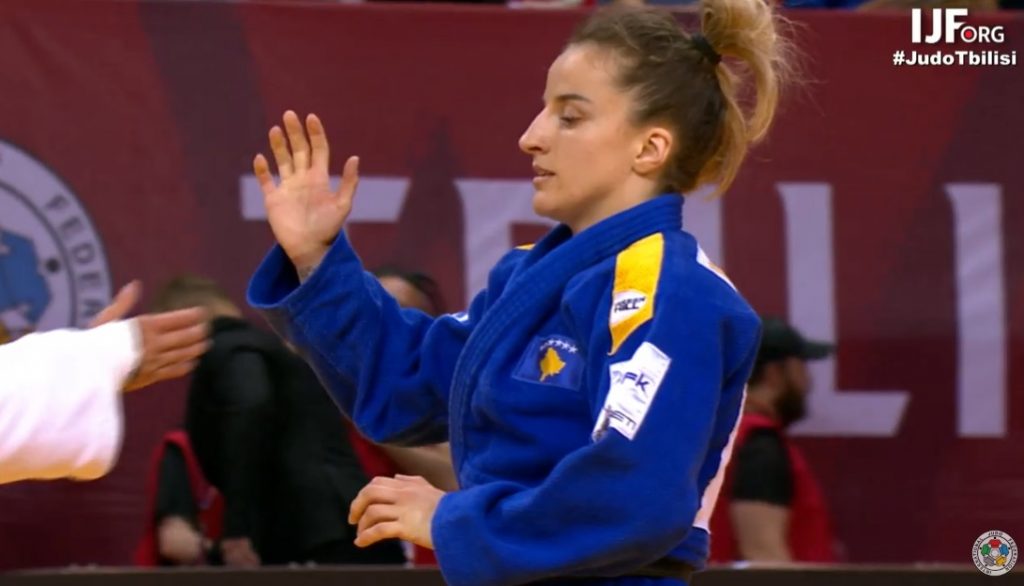 Kampionia olimpike, Distria Krasniqi, fitoi medaljen e artë në Grand Slamin e xhudos, që po mbahet në Tbilisi të Gjeorgjisë, kategoria -52 kg.