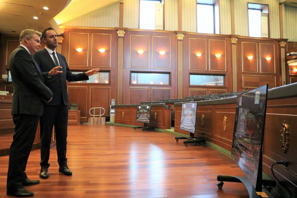Pas takimit kryetari Konjufca dhe z. Dietz vizituan bashkërisht ambientet e sallës plenare dhe panë nga afër pajisjet e instaluara.