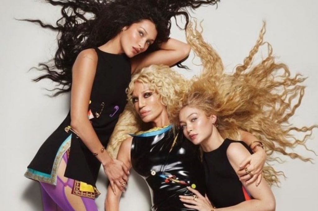 Disenjatorja e njohur, Donatella Versace, ka pozuar për kampanjën SS22 të Versace bashkë me supermodelet motra Gigi dhe Bella Hadid.
