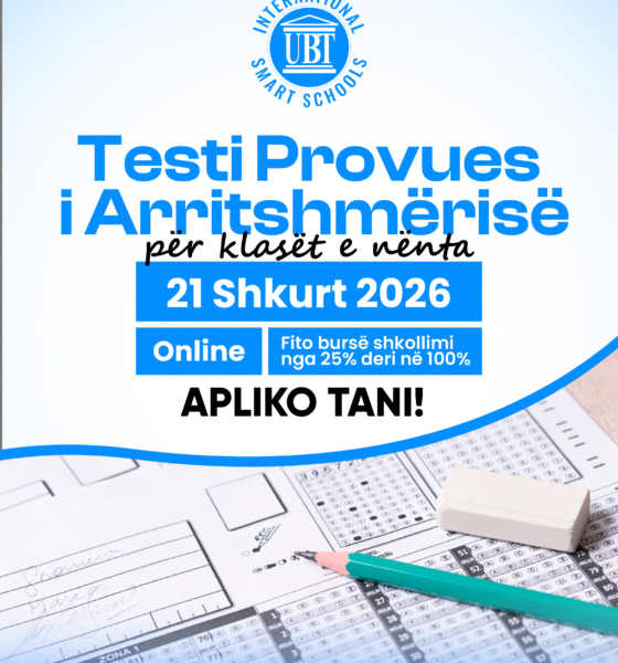 ubtnewsUBT International Smart Schools njofton se kanë mbetur edhe pak ditë për aplikim në edicionin e dytë të Testit Provues të Arritshmërisë, i cili do të mbahet më 21 shkurt dhe është i dedikuar për të gjithë nxënësit e klasave të 9-ta në Kosovë.