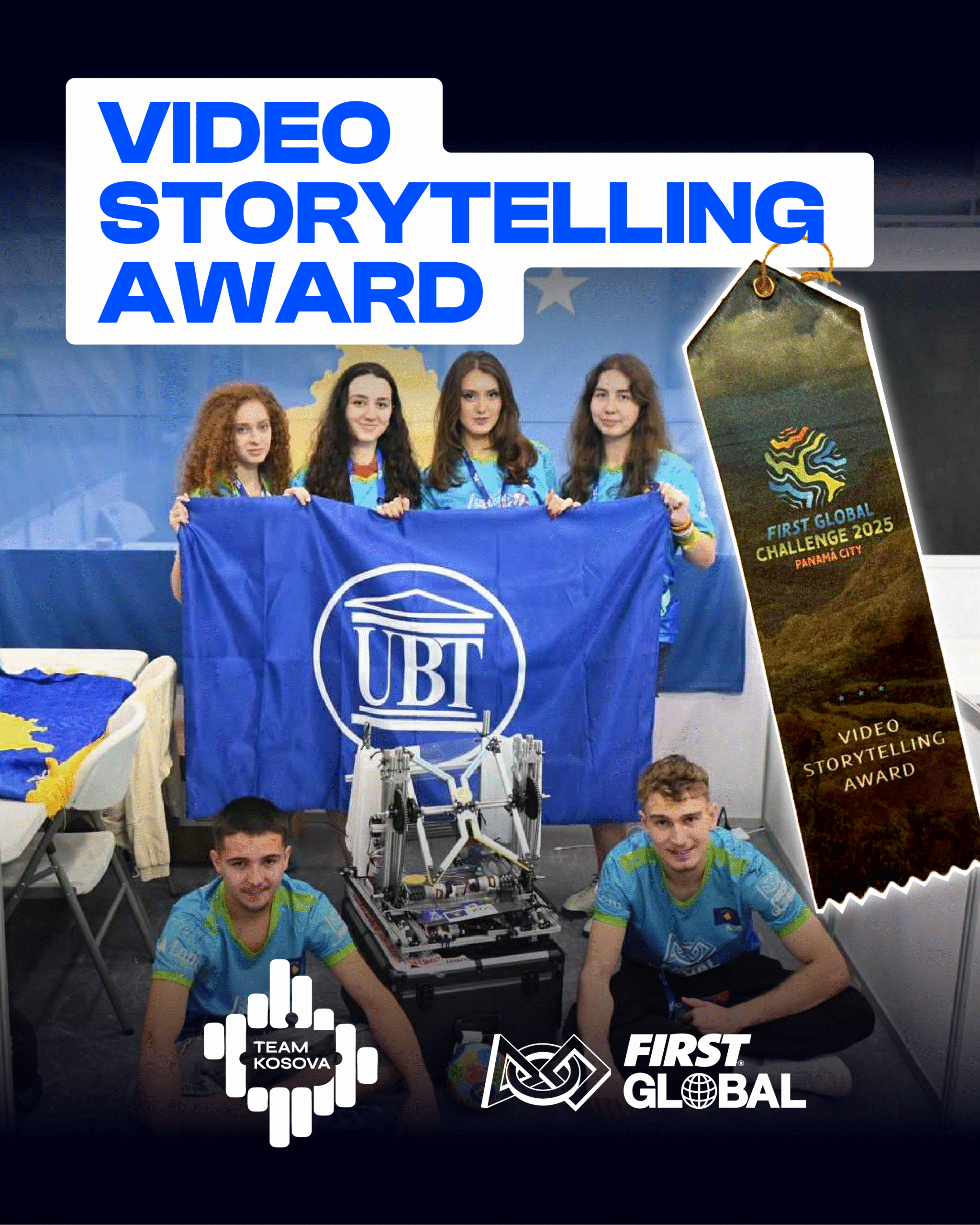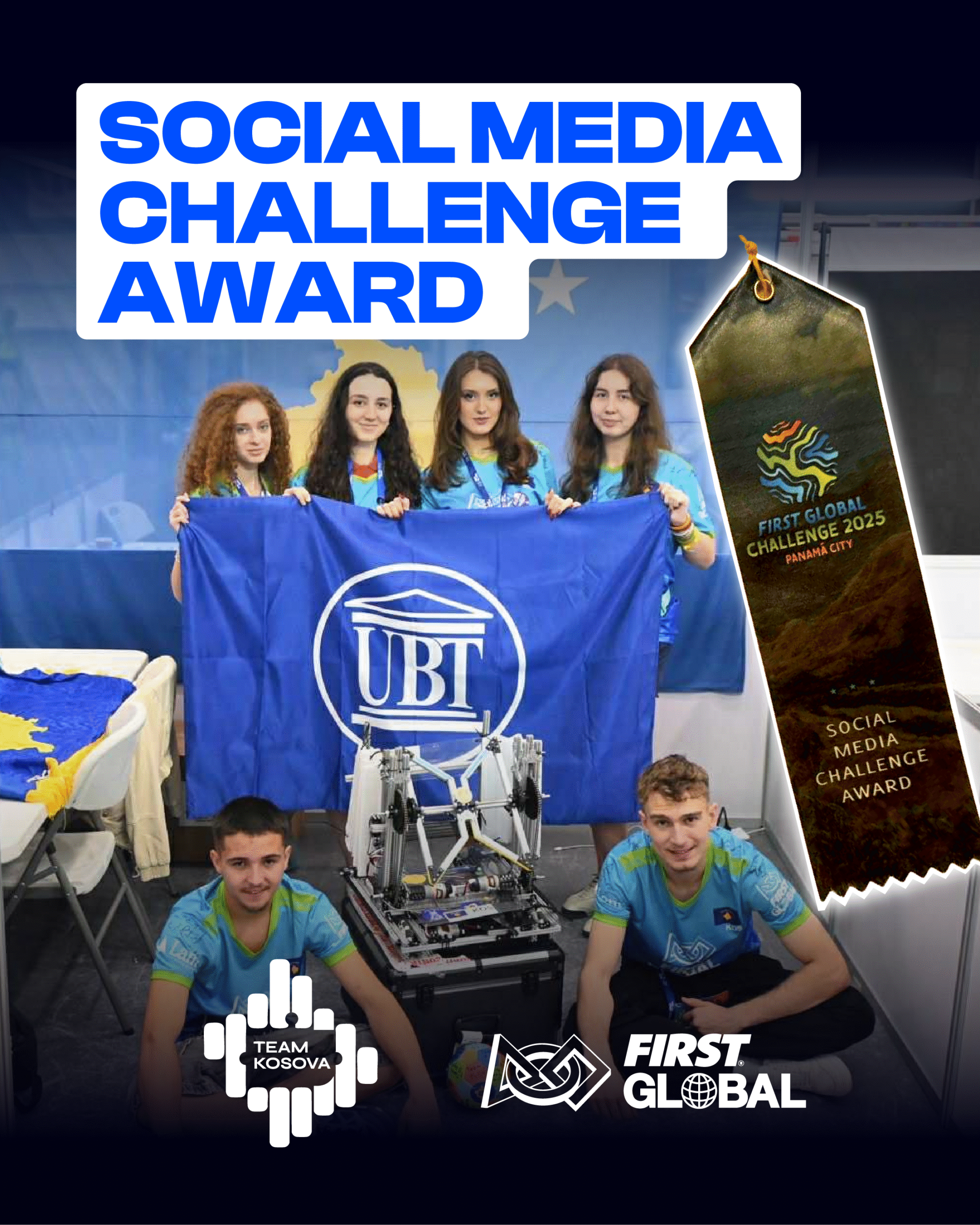 Driton IseniNga Panamaja, ekipi përfaqësues i Kosovës në garën botërore të robotikës FIRST Global Challenge u vlerësua për videon më të mirë prezantuese dhe për dokumentimin më të mirë të garës në rrjetet sociale në mesin e 190 shteteve pjesëmarrëse.