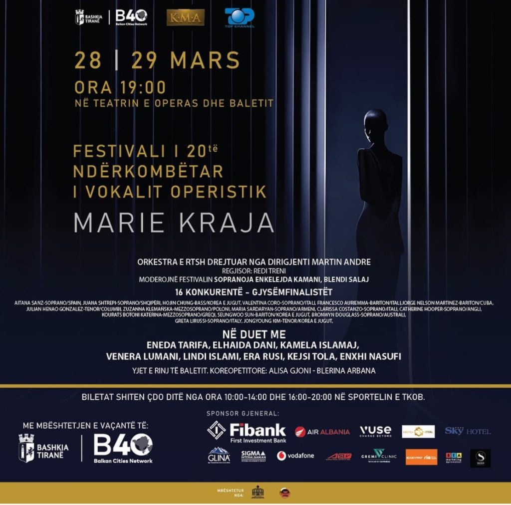 Në kthesën e bukur të marsit, kur qielli i Tiranës dritën e shpërfaq me yje të rralla, Festivali Ndërkombëtar i Vokalit Operistik “Marie Kraja” përgatitet për një revolucion artistik. Ngjarja mahnitëse, e cila si një pikë e ndriçimit shkëlqen në skenën e Teatrit Kombëtar të Operas dhe Baletit, po rikthehet me një frymë të re, më madhështore dhe më frymëzuese se kurrë më parë.
