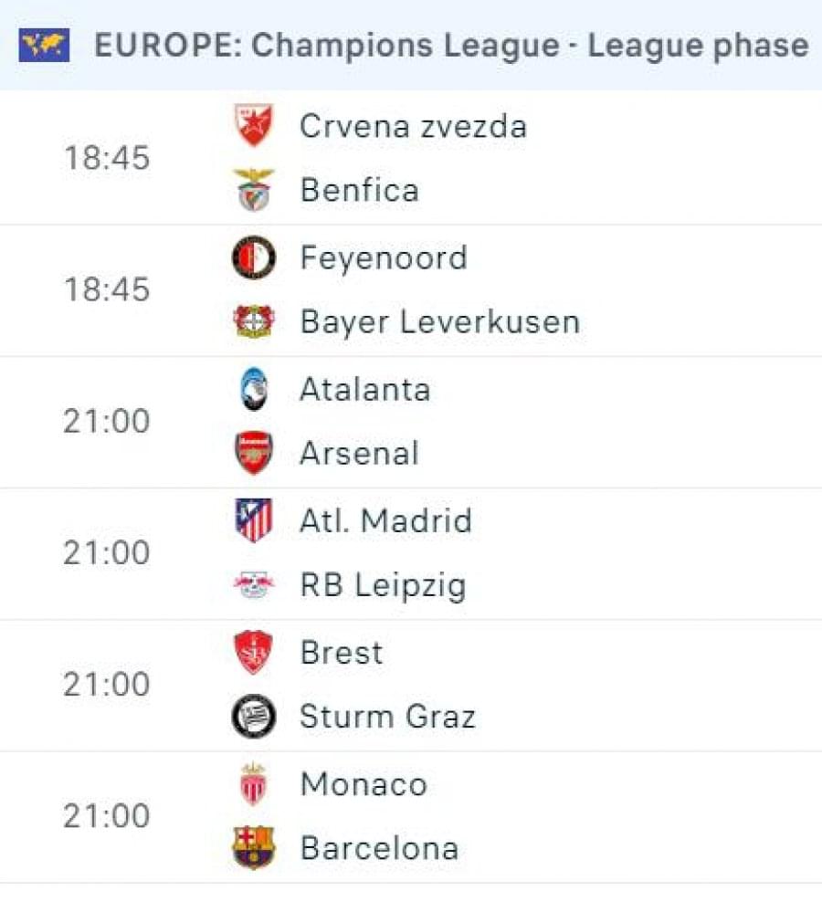 Ndërsa Barcelona përgatitet për këtë sfidë, ndeshjet e tjera të Champions League përfshijnë një duel interesant mes Atleticos së Madridit dhe Leipzigut në “Wanda Metropolitano”, si dhe takimin mes Atalantës dhe Arsenalit në Bergamo. Bayer Leverkuseni, kampion në fuqi i Bundesligës dhe Europa League, gjithashtu përballet me një test të rëndësishëm në fushën e Feyenoordit.