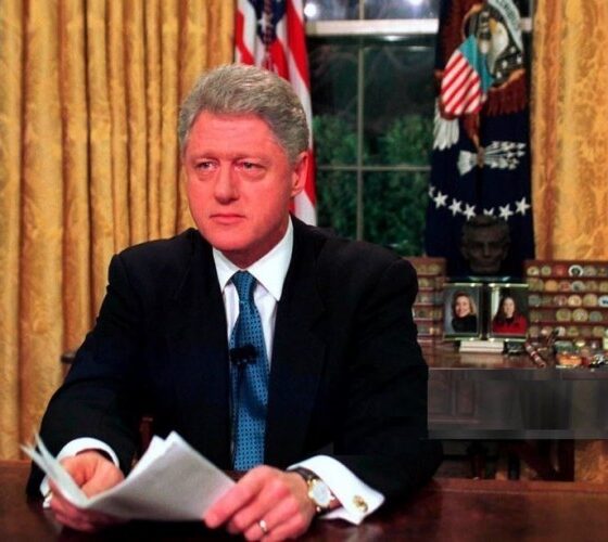 “Bashkëkohësit e mi amerikanë, sot forcat tona të armatosura u bashkuan me aleatët tanë të NATO-s në sulme ajrore kundër forcave serbe përgjegjëse për brutalitetin në Kosovë. Ne kemi vepruar me vendosmëri për disa arsye. Ne veprojmë për të mbrojtur mijëra njerëz të pafajshëm në Kosovë nga një ofensivë ushtarake në rritje. Ne veprojmë për të parandaluar një luftë më të gjerë, për të shpërndarë një kuti pluhuri në zemër të Evropës, e cila ka shpërthyer dy herë më parë në këtë shekull me rezultate katastrofike. Ne veprojmë të qëndrojmë të bashkuar me aleatët tanë për paqe. Duke vepruar tani, po i mbajmë vlerat tona, duke mbrojtur interesat tona dhe duke avancuar shkakun e paqes. Sonte dëshiroj të flas me ju për tragjedinë në Kosovë dhe pse ka rëndësi për Amerikën që ne të punojmë me aleatët tanë për t’i dhënë fund asaj. Së pari, më lejoni t’ju shpjegoj se për çfarë po i përgjigjemi. Kosova është një provincë e Serbisë, në mes të Evropës juglindore dhe rreth 160 milje në lindje të Italisë. Kjo është më pak se distanca midis Uashingtonit dhe Nju Jorkut, dhe vetëm rreth 70 milje në veri të Greqisë. Njerëzit e saj janë kryesisht shqiptarë etnikë dhe kryesisht myslimanë. Në 1989 kreu i Serbisë, Sllobodan Millosheviq, i njëjti lider i cili nisi luftërat në Bosnje dhe Kroaci dhe u zhvendos kundër Sllovenisë në dekadën e fundit, e hoqi Kosovën nga autonomia kushtetuese që i pëlqeu popullit, duke mohuar kështu të drejtën e tyre për të folur gjuhën e tyre shkolla, formojnë jetën e tyre të përditshme. Për vite të tëra, kosovari luftoi në mënyrë paqësore për t’i kthyer të drejtat e veta. Kur Presidenti Millosheviq i dërgoi trupat dhe policët për t’i shtypur ato, lufta u bë e dhunshme. Vjeshtën e kaluar, diplomacia jonë, e mbështetur nga kërcënimi i forcës nga aleanca jonë e NATO-s, ndaloi luftimet për pak kohë dhe shpëtoi dhjetëra mijëra njerëz nga ngrirja dhe uria në kodra ku kishin ikur për të shpëtuar jetën e tyre. Dhe muajin e kaluar, me aleatët tanë dhe Rusinë, ne propozuam një marrëveshje paqeje për t’i dhënë fund luftimeve për mirë. Krerët kosovarë nënshkruan atë marrëveshje javën e kaluar. Edhe pse nuk u jep atyre gjithçka që duan, megjithëse populli i tyre po vazhdonte të luftonte, ata panë se një paqe e drejtë është më e mirë se një luftë e gjatë dhe e pamposhtur. Krerët serbë, nga ana tjetër, refuzuan madje të diskutonin elementët kryesorë të marrëveshjes së paqes. Ndërsa kosovarët po thoshin po për paqen, Serbia stacionoi 40,000 trupa në dhe rreth Kosovës në përgatitje për një ofensivë të madhe dhe në shkelje të qartë të angazhimeve që kishin bërë. Tani ata kanë filluar të lëvizin nga fshati në fshat, duke i sulmuar civilët dhe duke djegur shtëpitë e tyre. Ne kemi parë njerëz të pafajshëm të marrë nga shtëpitë e tyre, të detyruar të bie në gjunjë në pluhur dhe të mbuluar me plumba. Burrat kosovarë u tërhoqën nga familjet, etërit dhe djemtë së bashku, u rreshtuan dhe qëlluan me gjak të ftohtë. Kjo nuk është luftë në kuptimin tradicional. Është një sulm nga tanket dhe artileria për një popull shumë të pambrojtur, udhëheqësit e të cilit tashmë kanë rënë dakord për paqen. Përfundimi i kësaj tragjedie është një domosdoshmëri morale. Është gjithashtu e rëndësishme për interesat kombëtare të Amerikës. Hidhni një sy në këtë hartë. Kosova është një vend i vogël, por ajo qëndron në një vijë madhore midis Evropës, Azisë dhe Lindjes së Mesme, në vendin e takimit të Islamit dhe të degëve perëndimore dhe ortodokse të krishterimit. Në jug janë aleatët tanë, Greqia dhe Turqia. Në veri, aleatët tanë të rinj demokratikë në Evropën Qendrore. Dhe në të gjithë Kosovën, ka vende të tjera të vogla, duke luftuar me sfidat e tyre ekonomike dhe politike, vende që mund të përmbysen nga një valë e re e madhe e refugjatëve nga Kosova. Të gjithë përbërësit për një luftë të madhe janë atje. Ankesat e vjetra, duke luftuar demokracitë dhe mbi të gjitha, një diktator në Serbi, i cili nuk ka bërë asgjë që nga përfundimi i Luftës së Ftohtë, por fillon luftëra të reja dhe derdh benzinë në flakët e ndarjes etnike dhe fetare. Sarajeva, kryeqyteti i Bosnjës fqinje, është vendi ku filloi Lufta e Parë Botërore. Lufta e Dytë Botërore dhe Holokausti e përfshinë këtë rajon. Në të dy luftërat Evropa ishte e ngadaltë për të njohur rreziqet, dhe Shtetet e Bashkuara pritën edhe më gjatë për të hyrë në konflikte. Vetëm imagjinoni nëse liderët në atë kohë kishin vepruar me mençuri dhe në fillim, sa shumë jetë mund të ishin shpëtuar? Sa amerikanë nuk do të duhej të vdisnin?Mësuam disa nga mësimet e njëjta në Bosnjë vetëm pak vite më parë. Bota nuk veproi sa më herët për ta ndalur atë luftë. Dhe të mos harrojmë se çfarë ka ndodhur. Njerëz të pafajshëm u futën në kampe, fëmijët u vranë nga snajperët gjatë rrugës për në shkollë, fushat e futbollit dhe parqet u shndërruan në varreza. Një e katërta e një milion njerëzve u vranë, jo për shkak të ndonjë gjëje që kishin bërë, por për shkak se kush ishin. Dy milionë boshnjakë u bënë refugjatë. Ky ishte gjenocid në zemër të Evropës, jo në vitin 1945, por në vitin 1995. Jo në disa lajme të prera nga koha e prindërve dhe gjyshërve tanë, por në kohën tonë, duke sfiduar njerëzimin tonë dhe vendosmërinë tonë. Në atë kohë, shumë njerëz besonin se asgjë nuk mund të bëhej për t’i dhënë fund gjakderdhjes në Bosnje. Ata thanë: “Po, kjo është ashtu siç janë ata njerëz në Ballkan”. Por, kur ne dhe aleatët tanë u bashkuam me boshnjakë të guximshëm për të qëndruar deri tek agresorët, ne ndihmuam t’i japim fund luft