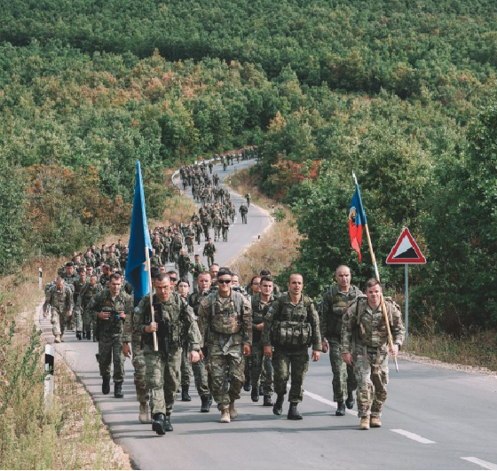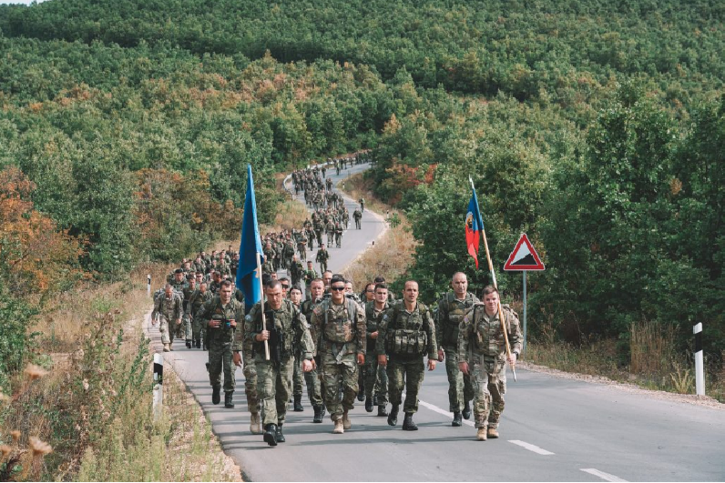 “Regjimenti i Parë i Këmbësorisë së FSK-së së bashku me Brigadën e 86-të të Këmbësorisë së Ushtrisë Amerikane në marshim të përbashkët kondicional në përkujtim dhe nderim të viktimave të 11 Shtatorit 2001. Me kombin dhe ushtrinë amerikane do të ndajmë gjithmonë, edhe dhembjen edhe krenarinë!