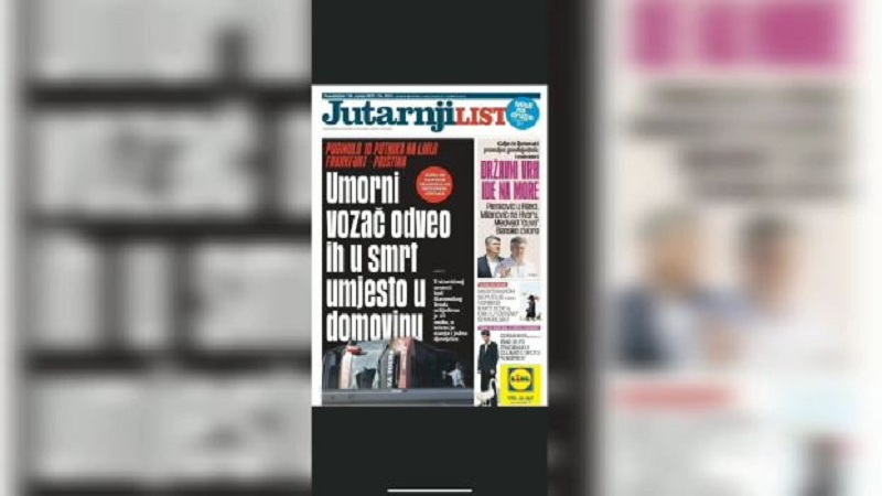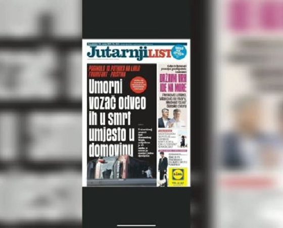 Gazeta më e madhe kroate hapet me titullin: Shoferi i lodhur i çoi drejt vdekjes në vend të atdheut