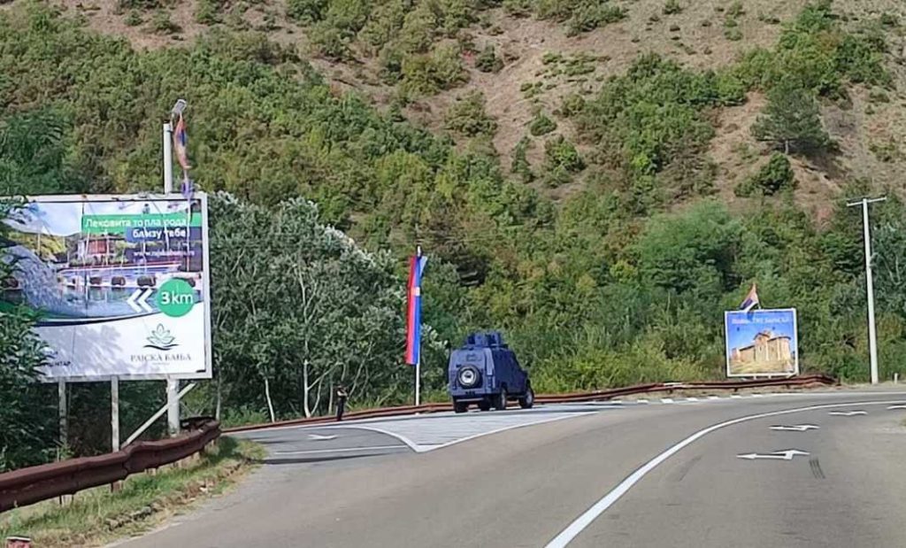 Njësia Speciale e Kosovës e ka vendosur një automjet të blinduar dhe vetura të tjera në kryqëzimin Ballaban, i cili dërgon në Banjskë.