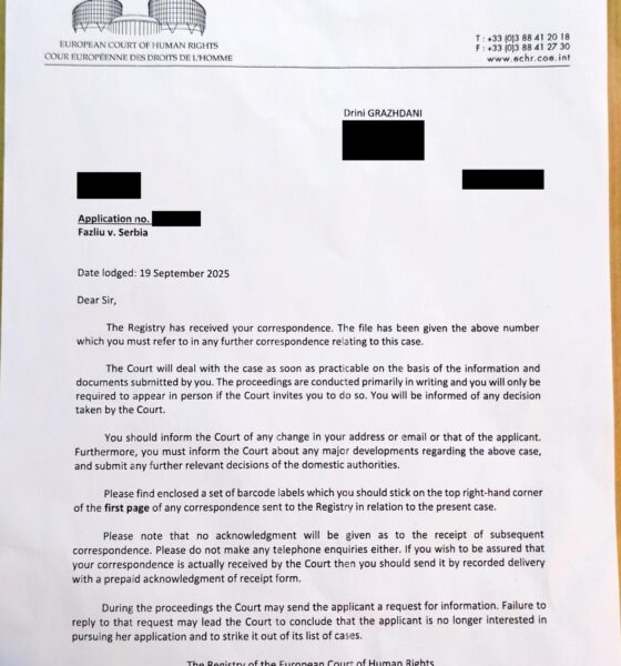 Për herë të parë, Gjykata Evropiane për të Drejtat e Njeriut në Strasburg ka regjistruar një padinë kundër Serbisë, e dorëzuar nga Teuta Fazliu, lidhur me pasivizimin e adresave të shqiptarëve që jetojnë në Luginë të Preshevës, Medvegjë dhe Bujanoc.