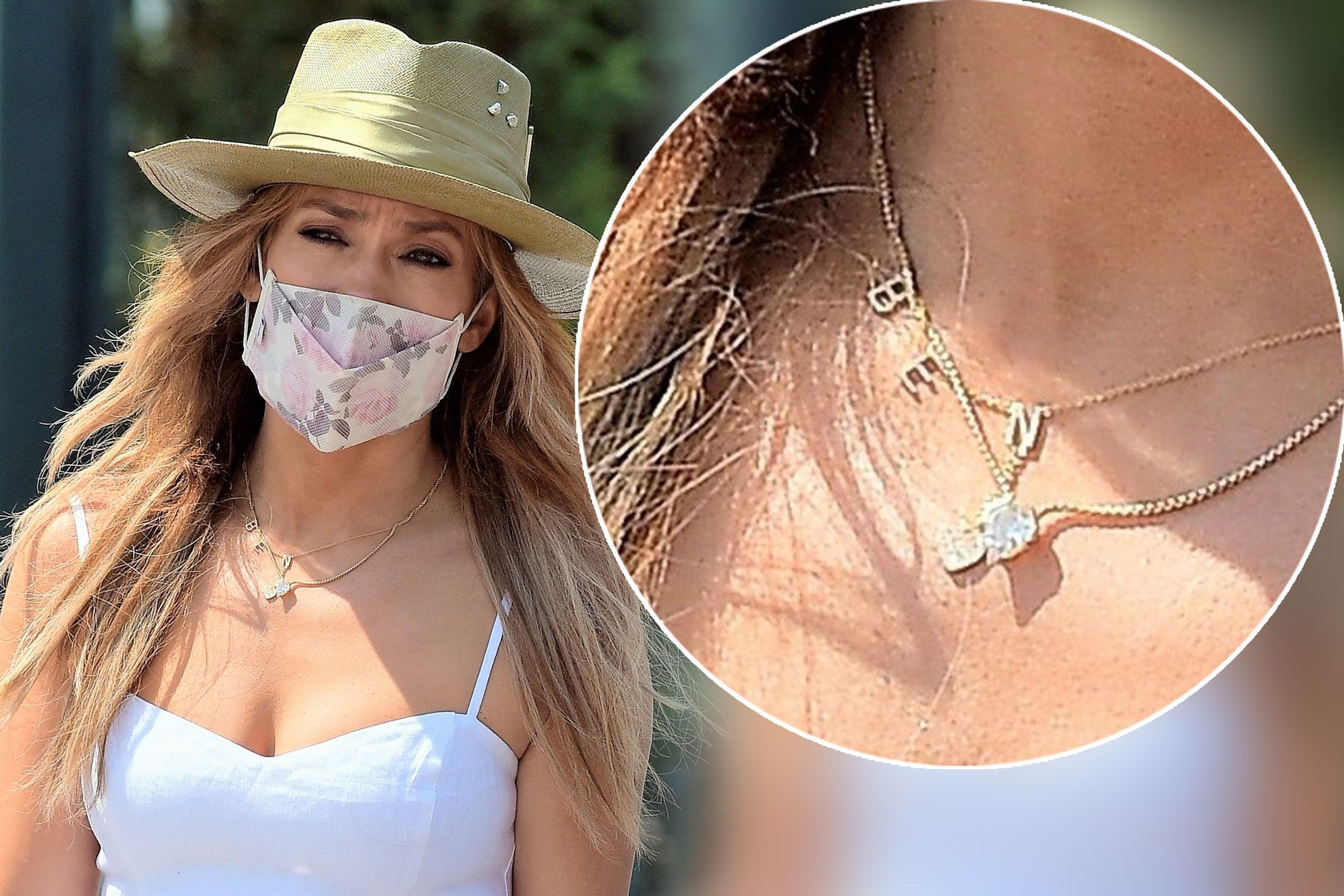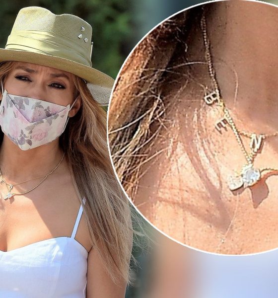 Jennifer Lopez mban një qafore që shkruan ‘BEN’