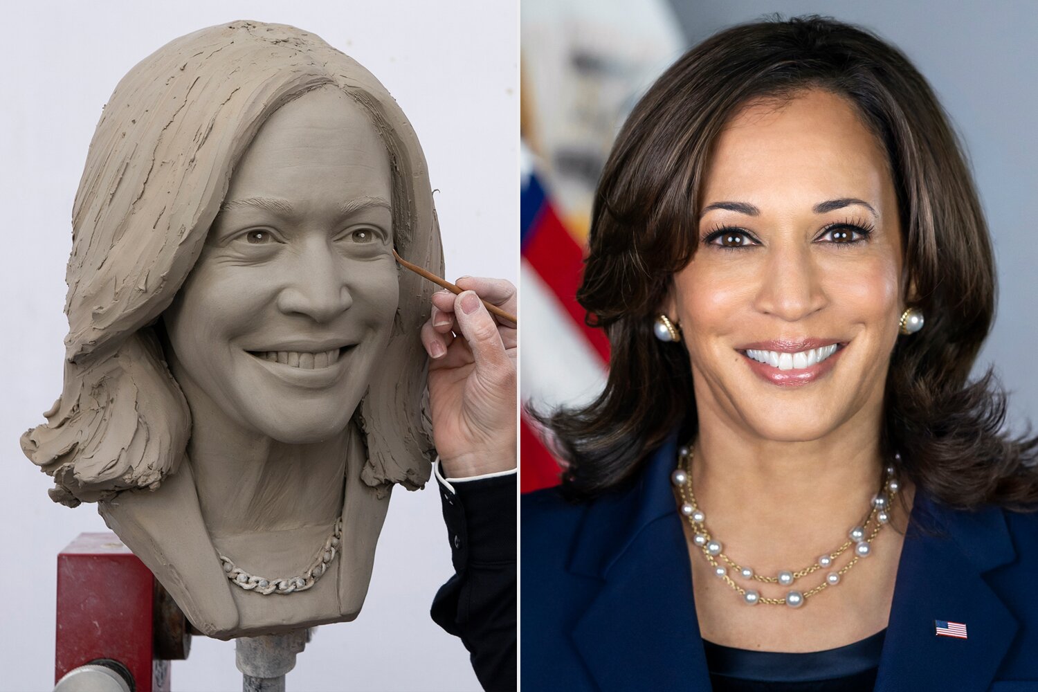 Në Times Square u lëshua fotografia të mërkurën, për punën e bërë deri më tani në bustet e nën-presidentes Kamala Harris dhe presidentit të Shteteve të Bashkuara të Amerikës, Joe Biden për nder të ditës së tyre të 100-të në detyrë.