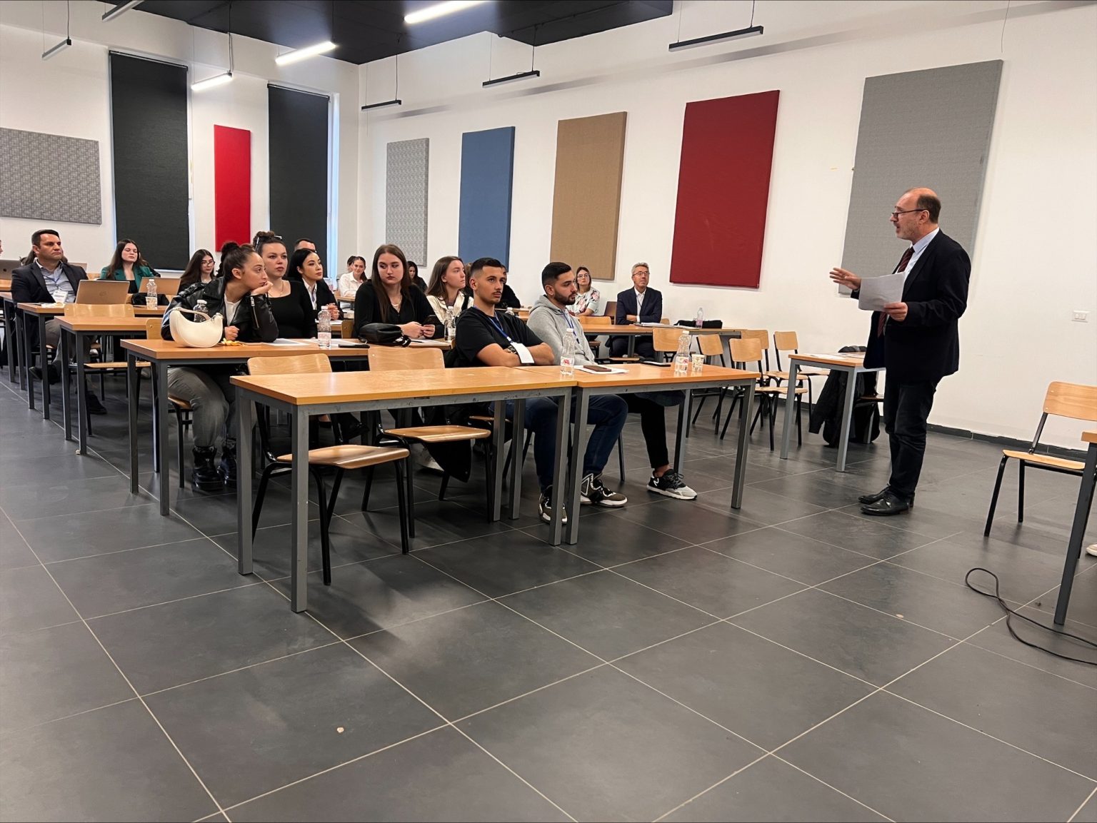 Ligjërata u karakterizua nga diskutime interaktive, ku studentët patën mundësi të bëjnë pyetje dhe të njihen më nga afër me sfidat, mundësitë dhe realitetin e profesionit të arkitektit dhe dizajnerit të enterierit. Ky takim shërbeu si një urë lidhëse mes teorisë akademike dhe praktikës profesionale, duke i motivuar studentët për zhvillimin e mëtejmë të aftësive të tyre kreative dhe profesionale.
