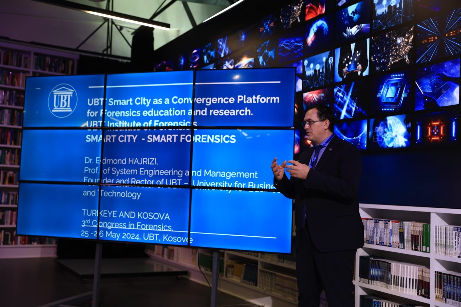 Prof. Dr. Edmond Hajrizi, Rektor i UBT-së, prezantoi temën “UBT Smart City as a Convergence Platform for Forensics Education and Research, UBT Institute of Forensics, Kosovo Forensic Toxicology”, ky punim diskutoi platformën e qytetit të mençur të UBT-së si një platformë konvergjente për edukimin dhe kërkimin në forenzikë. Kjo platformë mundëson integrimin e teknologjive të avancuara për të përmirësuar praktikat forenzike dhe edukimin e studentëve në këtë fushë.