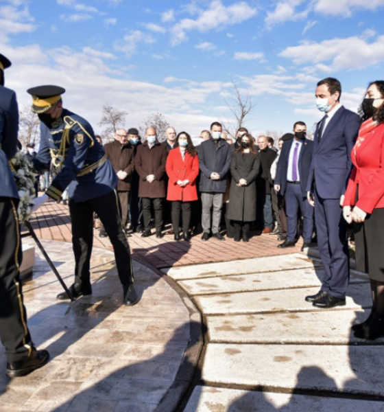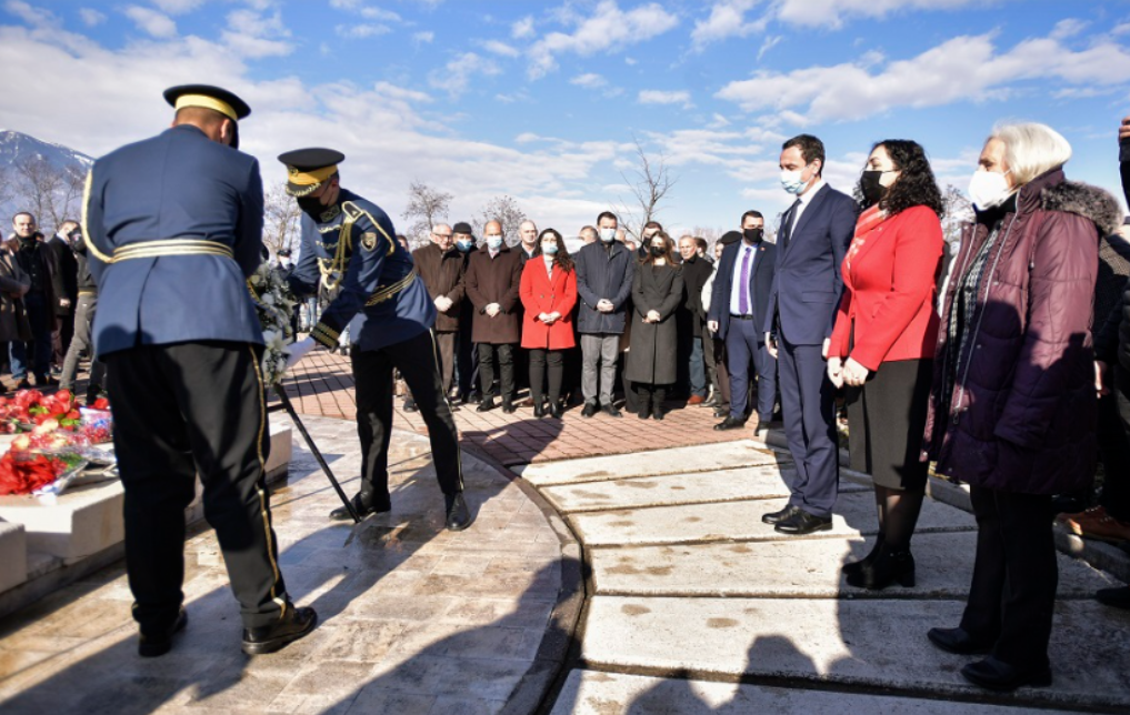 Nga aty, kryeministri Kurti, presidentja Osmani dhe zëvendëskryeministrja Gërvalla, bënë homazhe dhe vendosen kurorë me lule, te varrezat e Jusuf dhe Bardhosh Gërvallës.