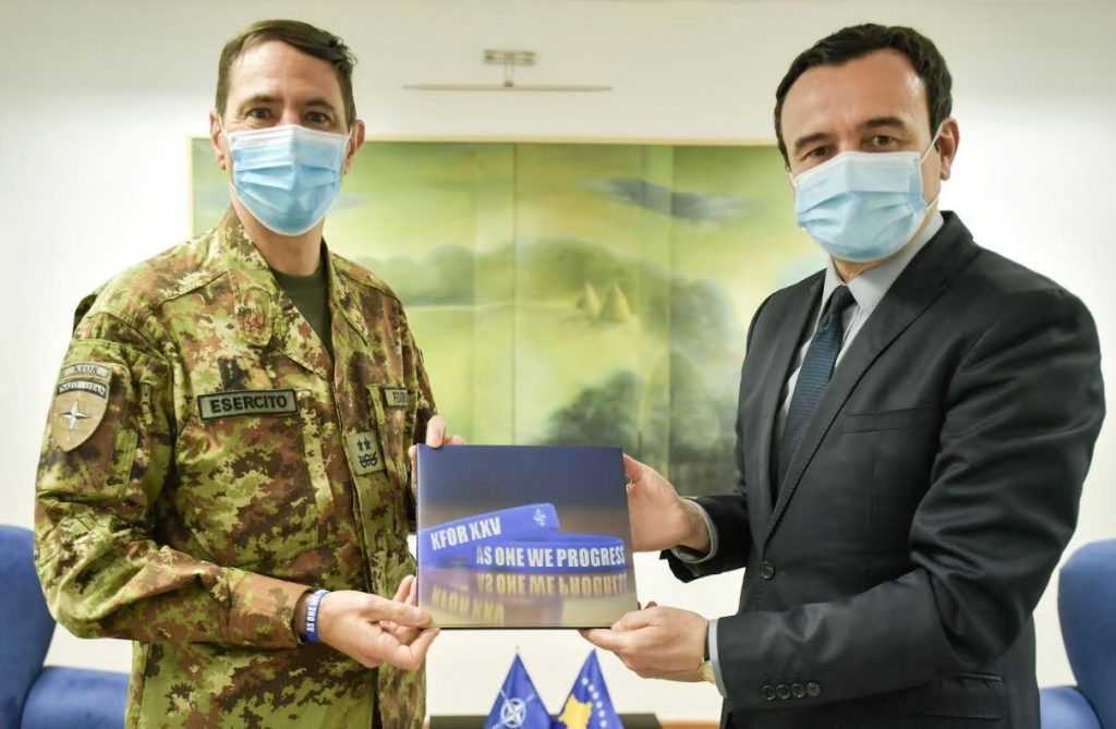 Kurti e falënderoi komandantin Federici për kontributin në thellimin e bashkëpunimit ndërinstitucional dhe bashkërendimin e veprimeve ndërmjet institucioneve të Kosovës dhe KFOR-it, në shërbim të sigurisë së të gjithë qytetarëve të Kosovës.