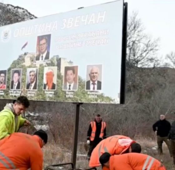 Është hequr bilbordi me fotografitë e politikanëve e personaliteteve të tjera serbe dhe ruse, e të cilët ishin shpallur “qytetarë nderi në Zveçan”. Në mesin e tyre ishte ishte fotografia e presidentit rus, Vladimir Putin dhe atij të Serbisë, Aleksandar Vuçiq.