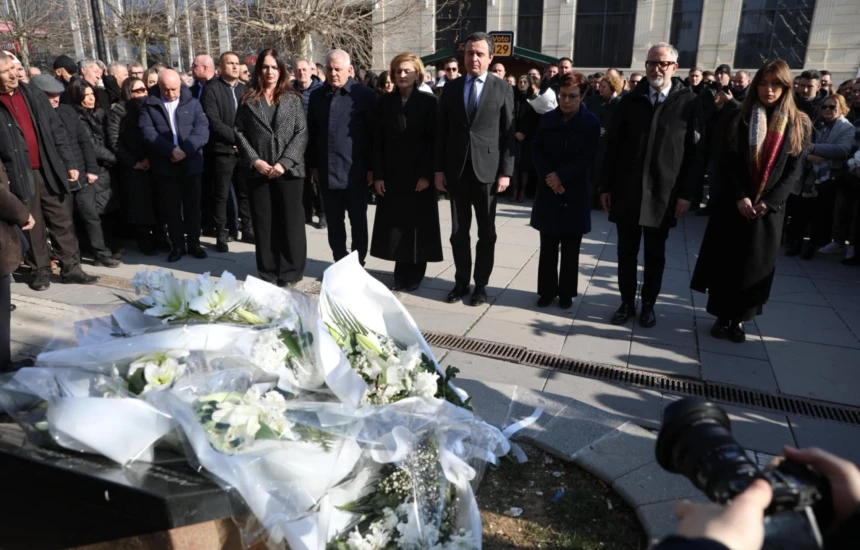 Mbahen homazhe te pllaka përkujtimore në nderim të Arben Xheladinit dhe Mon Balaj