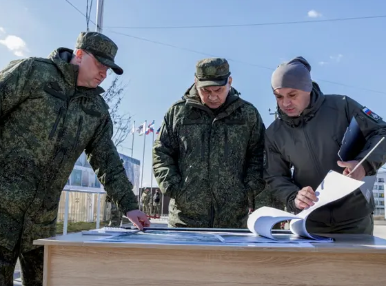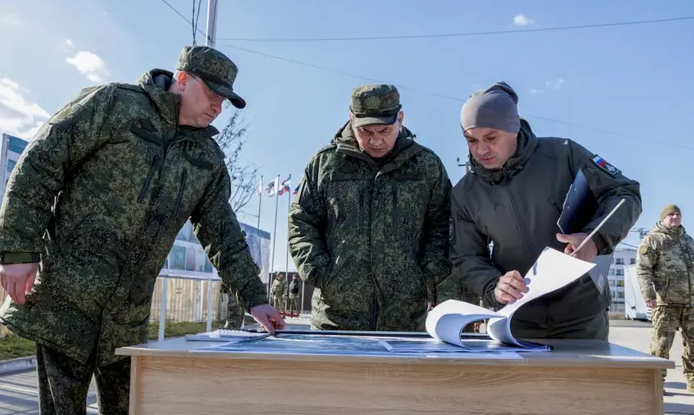 Ministria ruse e mbrojtjes publikoi të hënën disa fotografi ku shihet ai duke inspektuar infrastrukturën e dëmtuar si pasojë e luftës.