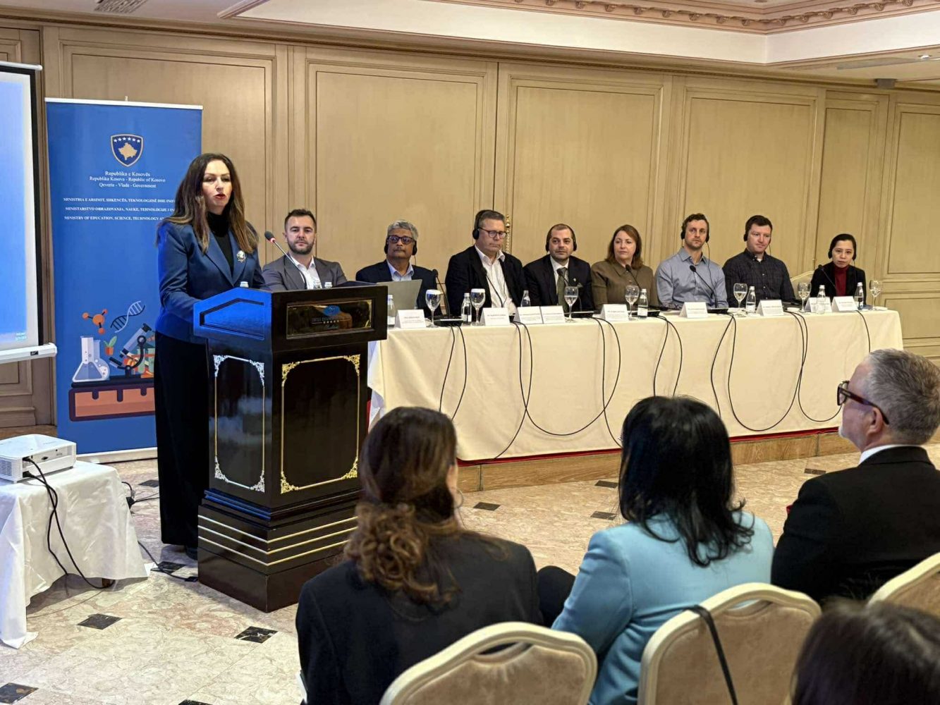 “Këtë e kemi realizuar përmes universiteteve tona publike, por edhe duke ofruar mbështetje në forma të ndryshme duke mbështetur me bursa për herë të parë vajzat që studiojnë në fushat STEM. Qëllimi është të inkurajojmë vajzat të zhvillojnë potencialin e tyre në fusha tradicionalisht të mbizotëruara nga djemtë, por njëkohësisht edhe të krijojmë hapësira që inxhinieret e ardhshme të kontribuojnë në adresimin e nevojave edukative dhe shëndetësore të qytetarëve tanë. Që në fillim të mandatit tonë kemi rikthyer në funksionim Këshillin Kombëtar të Shkencës, duke e ringjallur këtë organ tepër të rëndësishëm pas një dekade pasivitet. Në këtë kuadër, kemi miratuar edhe Programin Kombëtar të Shkencës 2023-2028, dhe kemi aprovuar Koncept-Dokumentin për Veprimtarinë Kërkimore-Shkencore. Javën e kaluar mbajtëm një tryezë me shkencëtarë dhe hulumtues të vendit, me qëllim të zbatimit praktik të Programit Kombëtar të Shkencës dhe përcaktimit konkret të fushave prioritare dhe sektorëve me rëndësi shtetërore dhe kombëtare”, tha ajo.
