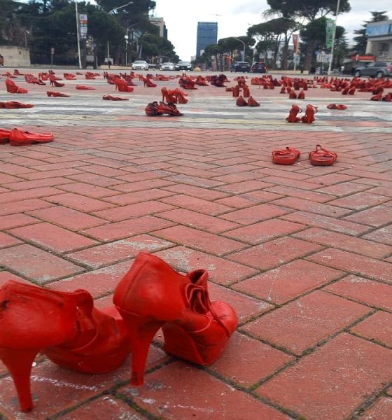 Dita Ndërkombëtare e Gruas po festohet dhe protestohet në Tiranë. Në sheshin “Nënë Tereza” në Tiranë është vendosur instalacioni “Këpucët e kuqe”.