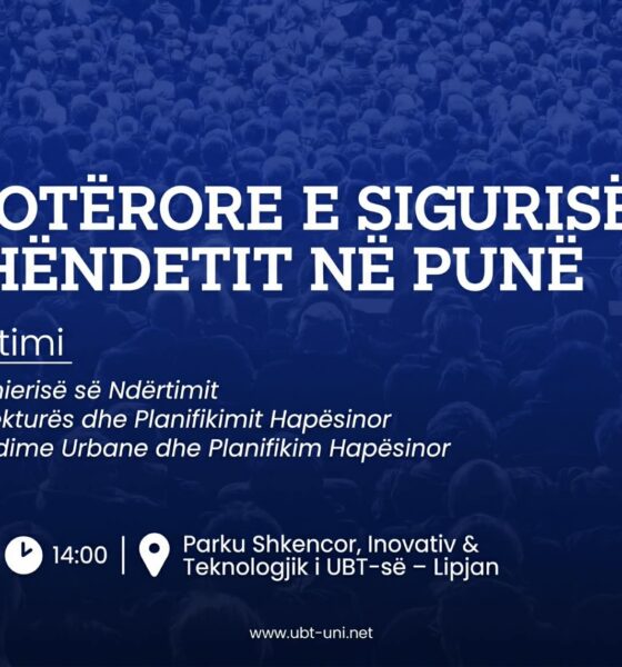 Me rastin e Ditës Botërore të Sigurisë dhe Shëndetit në Punë, UBT do të jetë nikoqir i një diskutimi që prek një prej sektorëve më dinamikë në vend: ndërtimin. Ngjarja do të mbahet nesër, më 28 prill 2026, duke filluar nga ora 14:00, në ambientet e Bibliotekës në Parkun Shkencor, Inovativ dhe Teknologjik të UBT-së, në Lipjan.