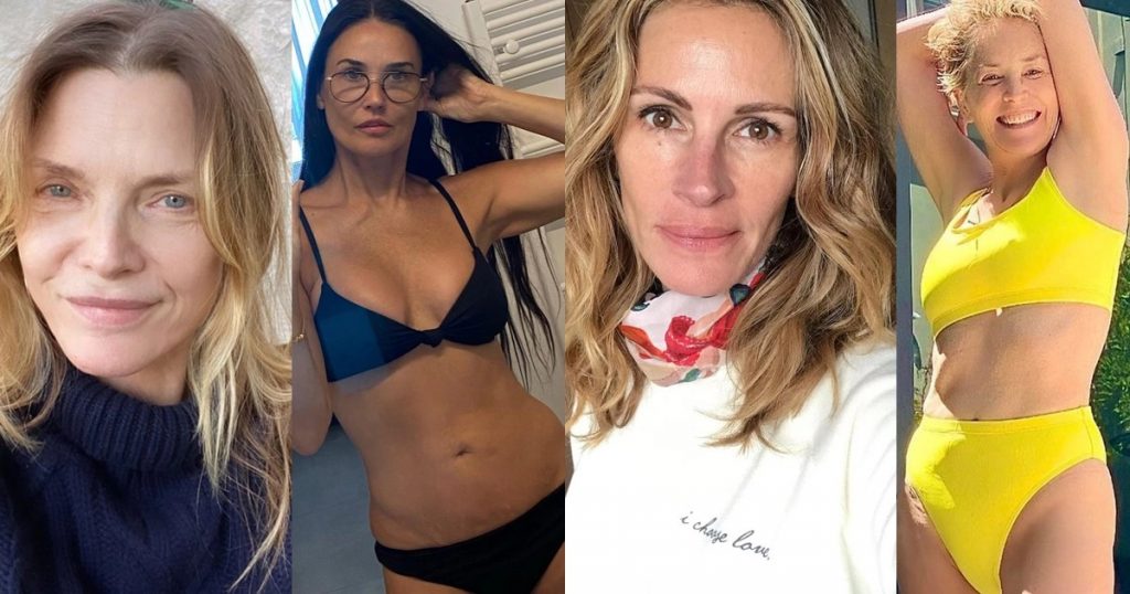 Sharon Stone është krenare për moshën dhe trupin e saj. Ylli 63-vjeçar i filmit shfaqet në Instagram me bikini dhe ia vlen të përgëzohet. Edhe Demi Moore, kur ishte me pushime në Greqi, ngatërrohet lehtë me tri vajzat e saj. 57 vitet janë vetëm një numër për të. Pas shumë ndërhyrjeve në të kaluarën, Nicole Kidman deklaroi se, nëse mund të kthehej pas, nuk do të bënte përsëri të njëjtat zgjedhje.