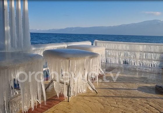 Betim GashiTemperaturat e ulëta deri në -14 gradë gjatë orëve të natës kanë krijuar forma interesante të akullit në bregun e liqenit të Pogradecit.