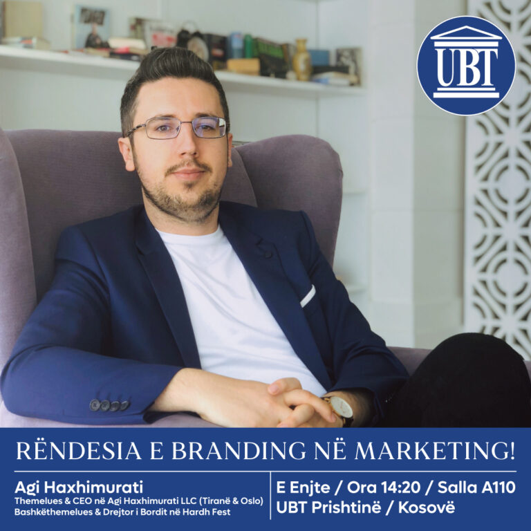 Në këtë takim do të flitet rreth temës “Rëndësia e Branding në marketing”, për t’i njoftuar studentët e UBT-së më shumë rreth këtij procesi, i cili llogaritet të jetë i rëndësishëm për fushën e marketingut.