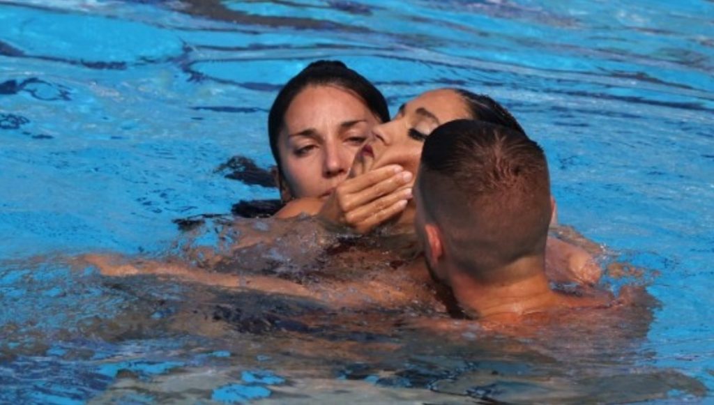 Trajnerja e saj, Andrea Fuentes, u hodh në ujë për të shpëtuar Alvarezin, i cila ishte zhytur deri në fund të pishinës dhe pati probleme me frymëmarrje pasi përfundoi rutinën e saj gjatë finales të së mërkurës mbrëma.