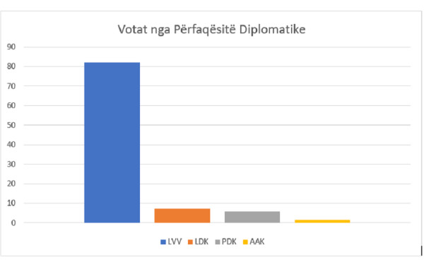 Sipas këtyre votave 81.89 për qind është votuar Lëvizja Vetëvendosje, 7.21 për qind të votave kanë shkuar për Lidhjen Demokratike të Kosovës, 5.75 për qind për Partinë Demokratike të Kosovës, derisa Aleanca për Ardhmërinë e Kosovës ka marr 1.54 për qind të votave.