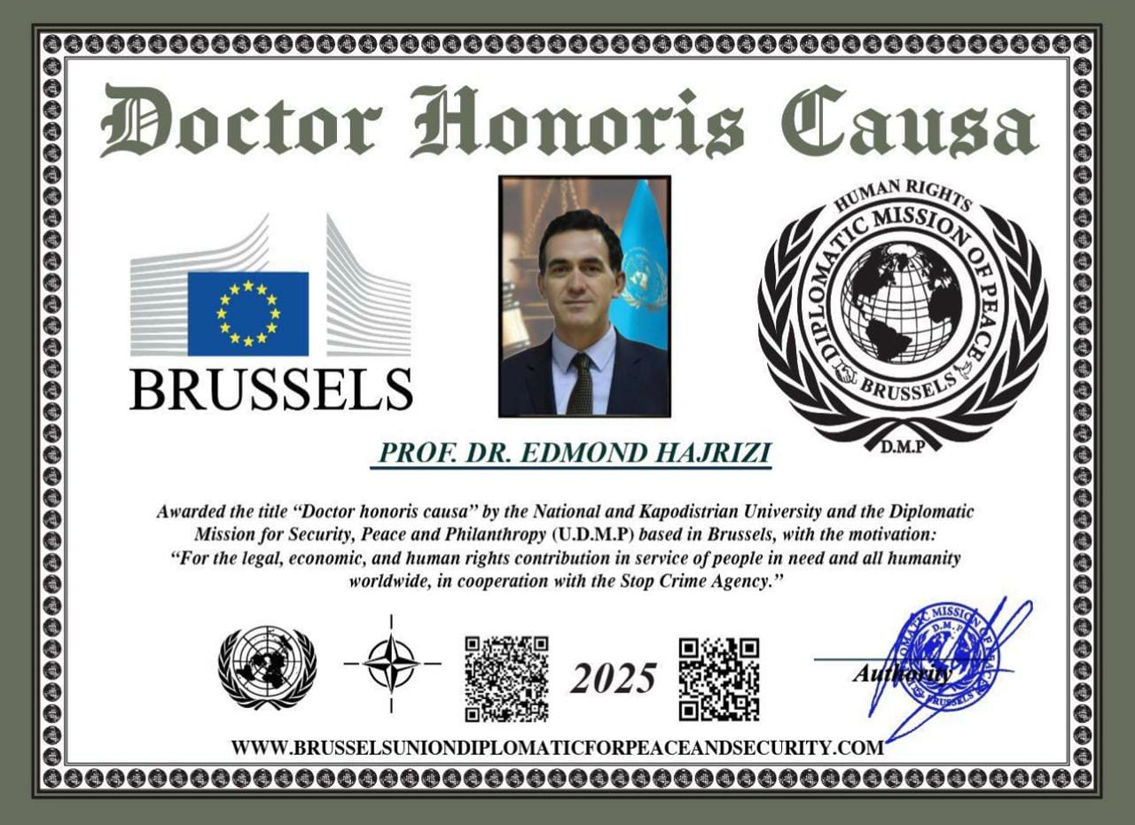 Titulli u miratua dhe u akordua nga Universiteti Kombëtar Kapodistrian, një nga institucionet më të vjetra të arsimit të lartë në Evropën Juglindore, në bashkëpunim me Misionin Diplomatik për Siguri, Paqe dhe Filantropi (U.D.M.P) me seli në Bruksel.