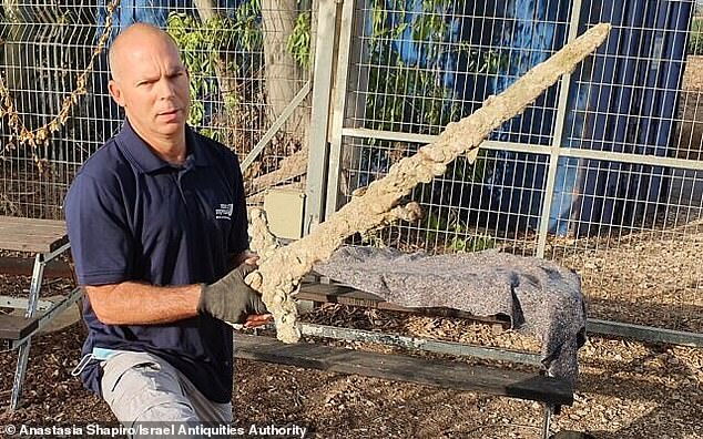E mbështjellë plotësisht nga guaska dhe organizma të tjerë detarë, shpata një metër e gjatë u dallua për shkak të rrymave të forta që kishin larguar rërën me të cilën kishte qëndruar e mbuluar për një kohë të gjatë.