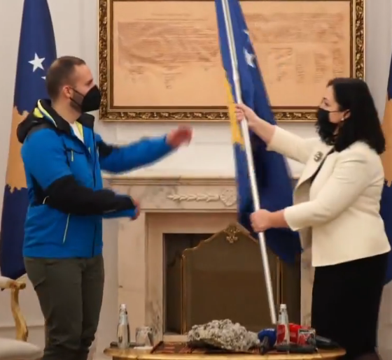 Betim GashiPresidentja e Republikës së Kosovës, Vjosa Osmani ua ka dorëzuar flamurin ekipit olimpik të Kosovës që do ta përfaqësojnë vendin në Lojërat Olimpike Dimërore “Pekini 2022”