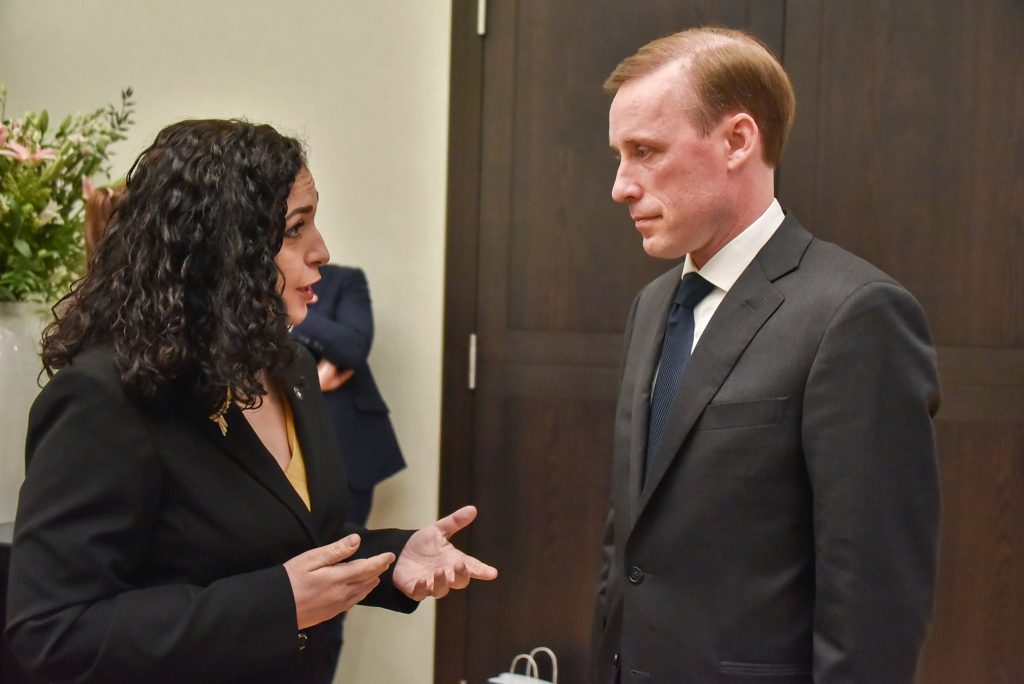 Zyra për media e Presidencës, në takim me këshilltarin për Siguri Kombëtare të presidentit Biden, Jake Sullivan, presidentja Osmani, diskutoi lidhur me situatën në Ballkanin Perëndimor pas pushtimit rus të Ukrainës si dhe për sfidat me të cilat po ballafaqohet ky rajon.