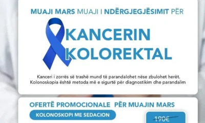 Muaji mars shënon periudhën e ndërgjegjësimit për kancerin kolorektal, një nga sëmundjet që mund të parandalohet nëse zbulohet në fazat...