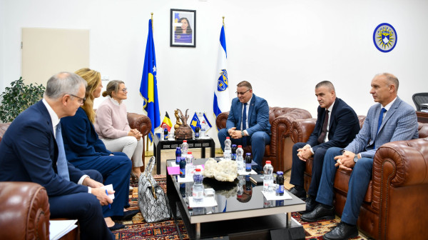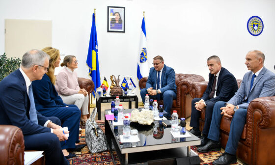Drejtori i përgjithshëm i Policisë së Kosovës, kolonel Gazmend Hoxha, së bashku me bashkëpunëtorët e tij, priti sot në takim ministren e Drejtësisë së Belgjikës, Annelies Verlinden dhe ministren e Migrimit dhe Azilit, Anneleen Van Bossuyt.